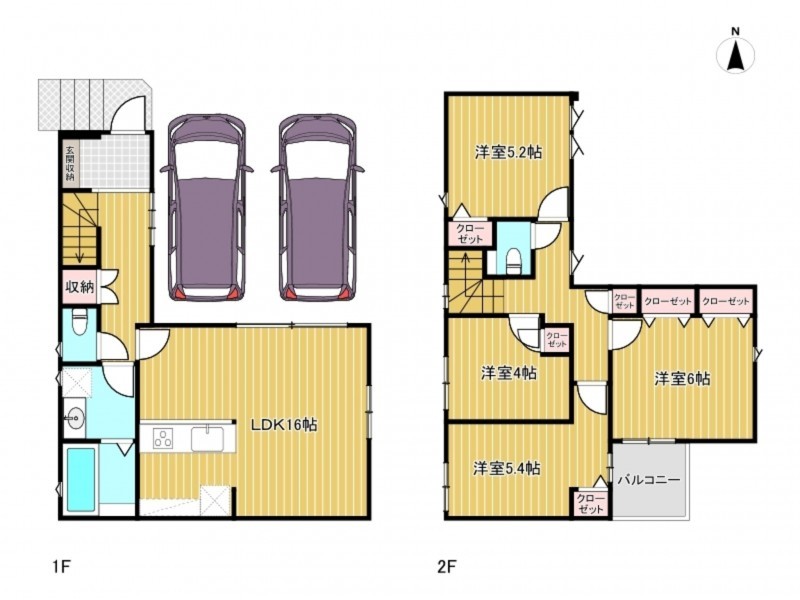 - システムキッチン、カウンターキッチン、浴室乾燥機、追い焚き、複層ガラス、ウォークインクローゼット、モニタ付インターホン、駐車場2台分、トイレ2箇所